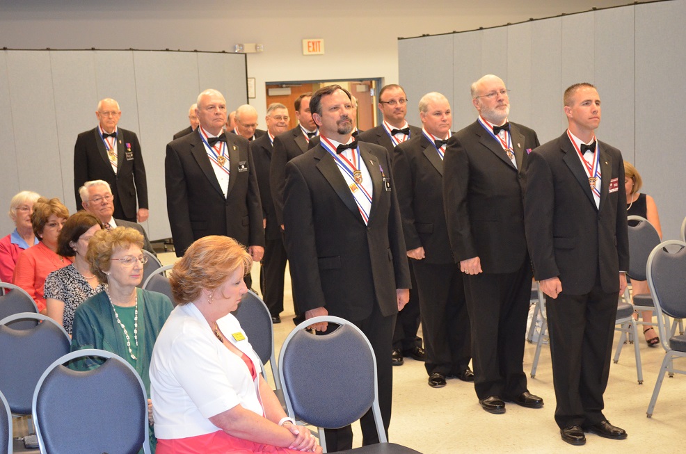 Officers receiving their charge of office. Incoming Faithful Navigator Brian Warner (Assy 384, Cncl 12255) standing at front to left in photo.