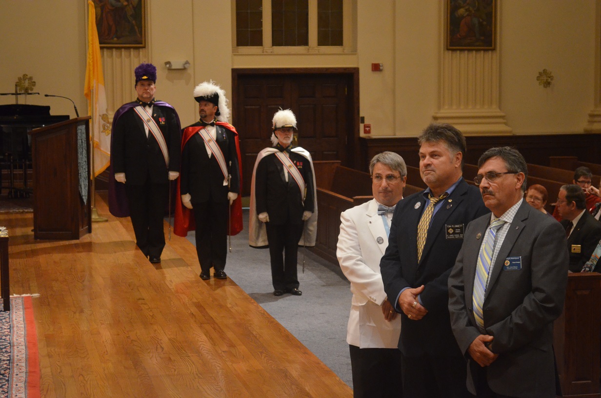 Color Corps from Bishop McNamara 4th Degree Assy #384 (LtoR) PFN Dirk Griffin (Assy 384, Cncl 12255), Faithful Navigator Brian Woerner (Assy 384, Cncl 12255), and PFN Dwayne Singleton (Assy 384, Cncl 12255).