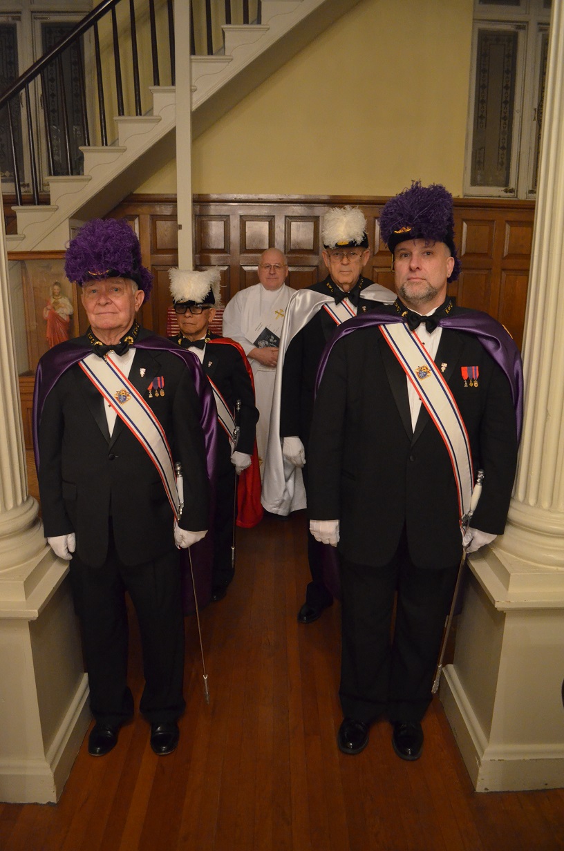 (LtoR) Bishop McNamara Assembly Color Corps Commander PFN Robert Jack (Assy 384, Cncl 11703), SK Reddi Cerezo (assy 384, Cncl 1622), St. John's Council Associate Chaplain SK Doug Nathan (Assy 384, Cncl 1622), PFN Robert Morrow (Assy 384, Cncl 1622), PFN Dirk Griffin (Assy 384, Cncl 12255).