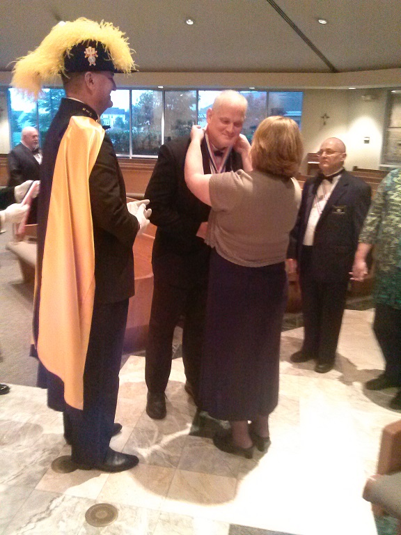Faithful Comptroller - PFN David F. Zakrzwski (Assy 384, Cncl 1622) recieves his jewel of office, placed by his wife Janet.