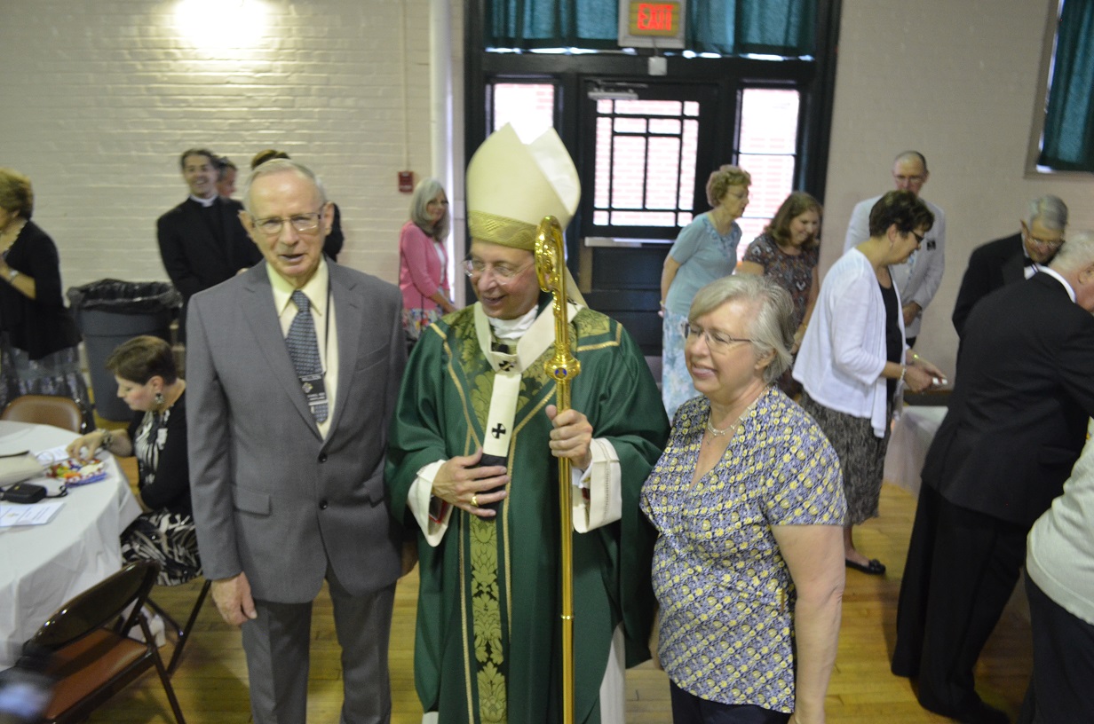 Br. Robert Willson (Cncl 1622) and Martha Willson greet Archbishop Lori.