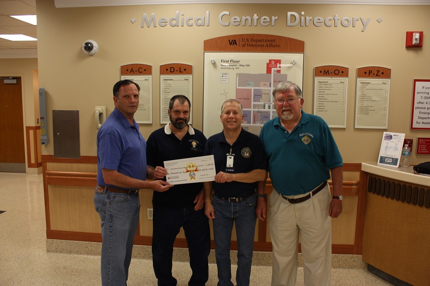 The Knights of Columbus Bishop McNamara Assembly 384 presented a check for $1,105 to the Martinsburg Veterans Administration Volunteer Services. Pictured from left to right are SK Brian Waerner, raffle chair; SK Keith Griffith, top raffle ticket seller; Terry Stoutler, chief VAVS; and SK Lawrence Kmiecik, assembly member.