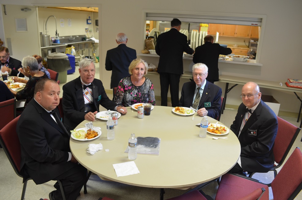 Follow-on reception and dinner. Seated at table (LtoR): SK Raymond Sanders (Assy 3483); SK Ken Allen (Assy 3483); Terry Allen; SK Skip Bush (Assy 3483); SK Craig Van Grootenbruel (Assy 384).
