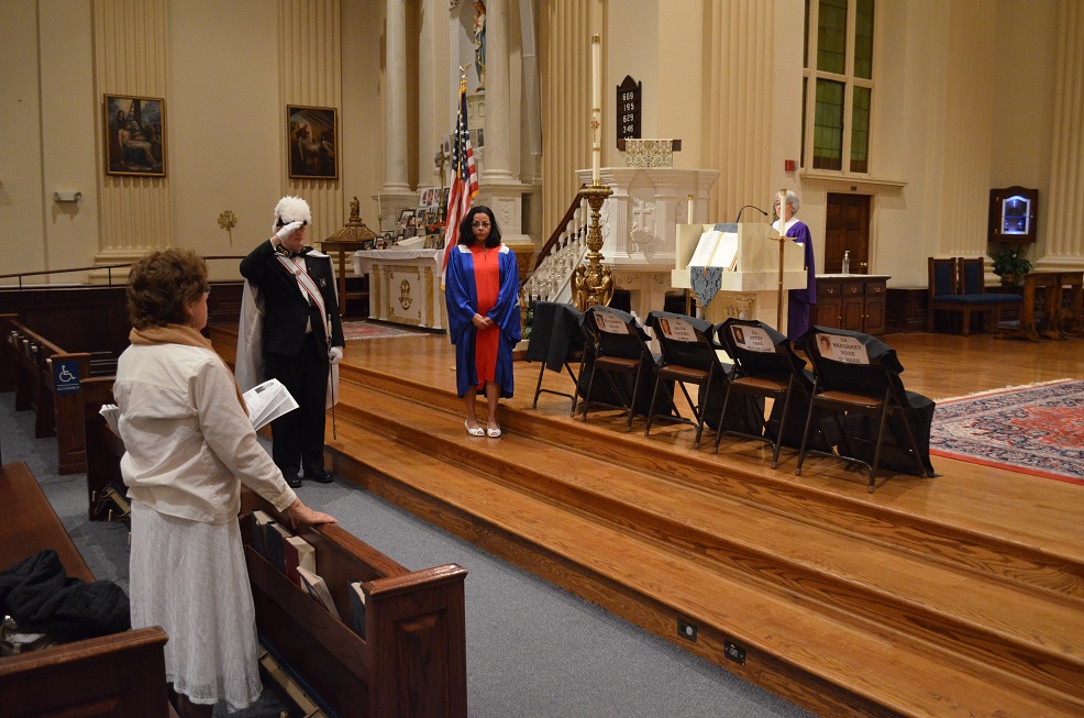 Commemorative service, chair draping for recently deceased Catholic Daughters and Spouces.