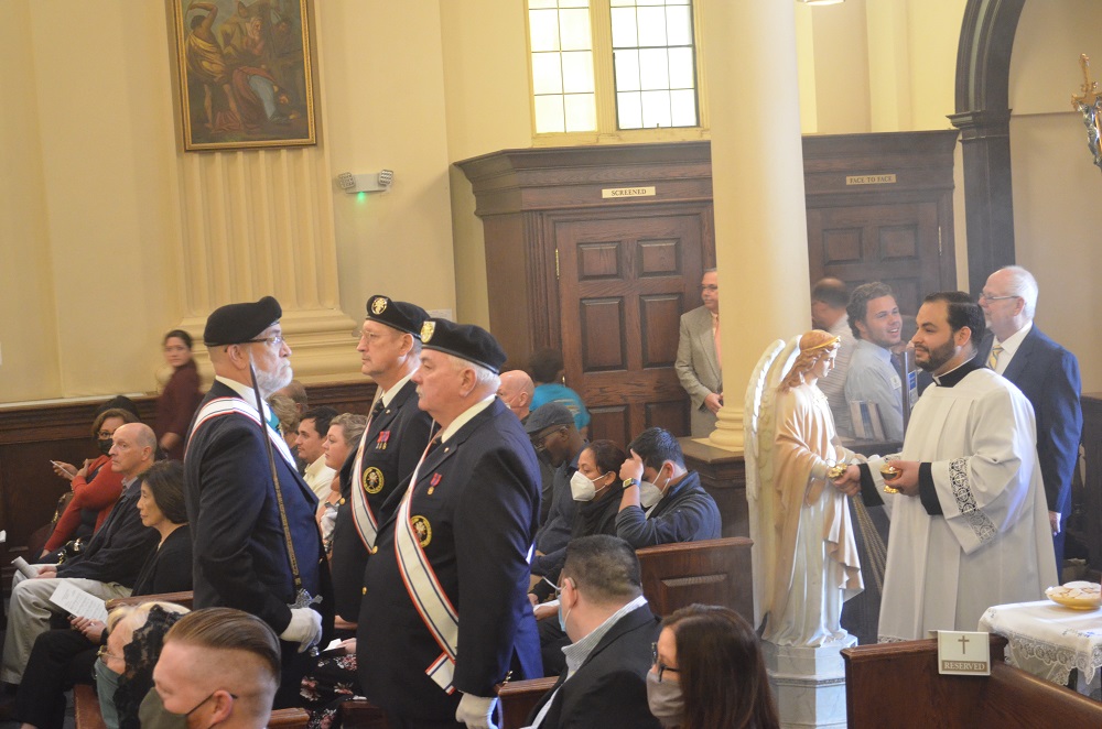 (LtoR) SK Marty Nau (District Marshall Father Michael J. McGivney Assembly# 2595), PFN Walter Leskuski (Color Corps Commander, Bishop McNamara Assembly #384) PFN Steve Mason (Father Michael J. McGivney Assembly 2595).