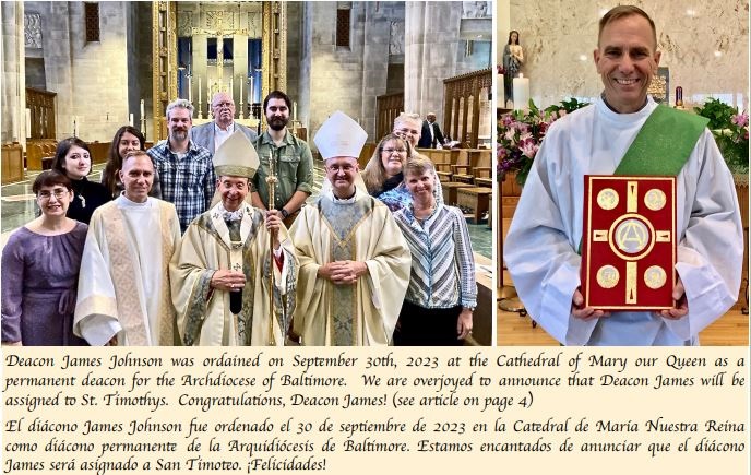 September 30, 2023. Bishop McNamara Assembly member James Johnson was ordained as a permanent deacon by ArchBishop William Lori at the Cathedral of Mary our Queen for the Archdiocese of Baltimore.