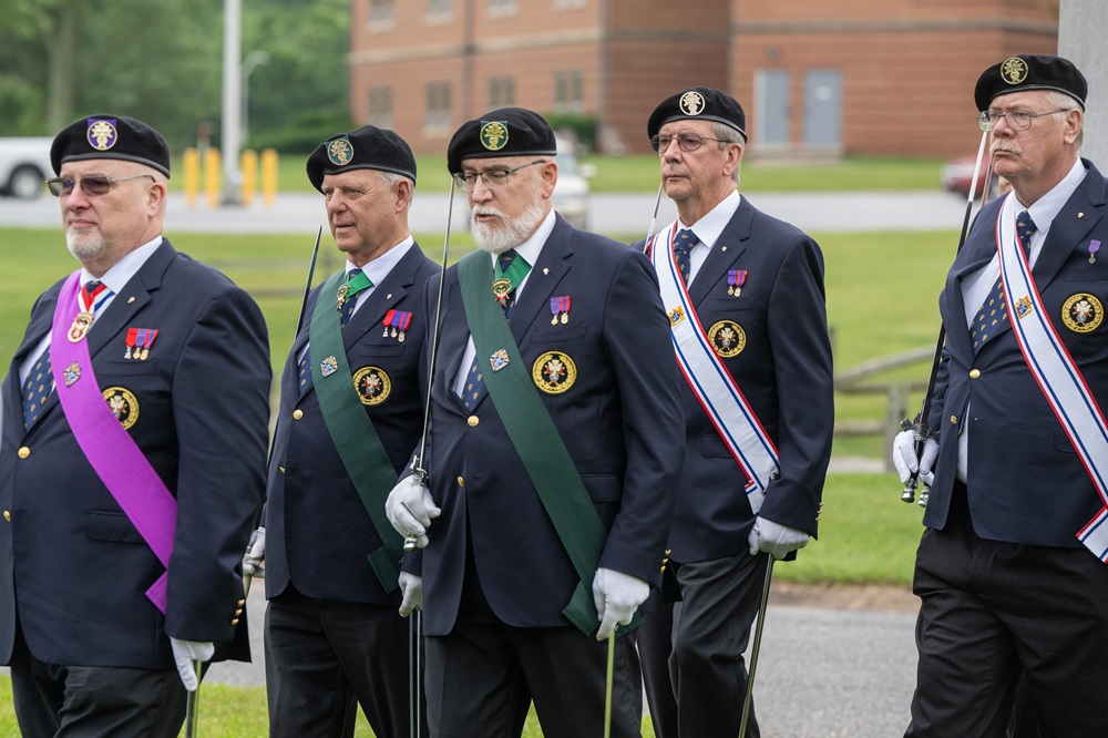 June 6, 2024, The Bishop McNamara Assy 384 color corps and other color corps members serve at National Shrine of Saint Elizabeth Ann Seton in Emmitsburg, MD for the National Eucharistic Pilgrimage. After a Mass in the Shrine by Archbishop William E. Lori, the color corps escort a eucharistic pilgrimage from the Shrine into downtown Emmitsburg and return.