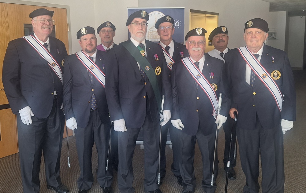 Photo (LtoR): SK David Satterfield (Bishop McNamara Assembly 384, Frederick, MD), SK Tom Robinson (Faithful Navigator, 384), SK Walt Leskuski (PFN, 384), SK Marty Mau (District Marshall, PFN, Michael J. McGivney Assembly 2595, Libertytown, MD), SK Kevin Quinn (PFN, 2595), SK Mike Lewis (PFN, 2595), SK Jose Rector (PFN, Chaplain Vincent R. Capodanno Assembly 3162, Ijamsville, MD), SK Mark Bevington (384).